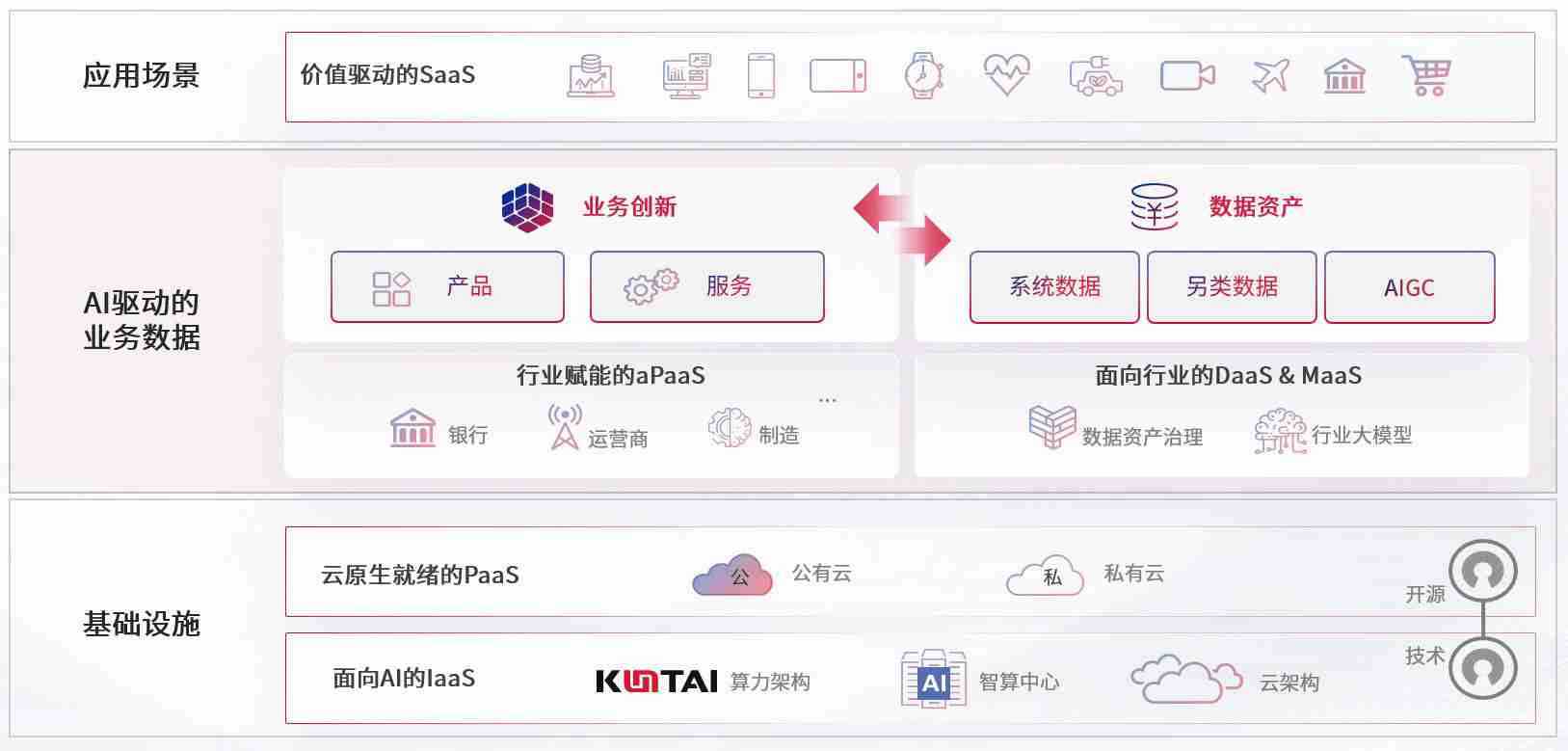 数字时代,,,,围绕企业数字化转型的关键要素,,,J9.COM数码开创性的提出数云融合战略和技术体系框架,,,,着力在云原生、、数字原生、、、AI原生和信创产业上架构产品和服务能力,,,,为处在不同数字化转型阶段的快消零售、、、汽车、、金融、、、医疗、、、政企、、、、教育、、、运营商等行业客户提供泛在的敏捷IT能力和融合的数据驱动能力,,构建跨界融合创新的数字业务场景和新业务模式,,助力企业级客户建立面向未来的核心能力和竞争优势,,全面推动社会的数字化、、、、智能化转型升级。。。